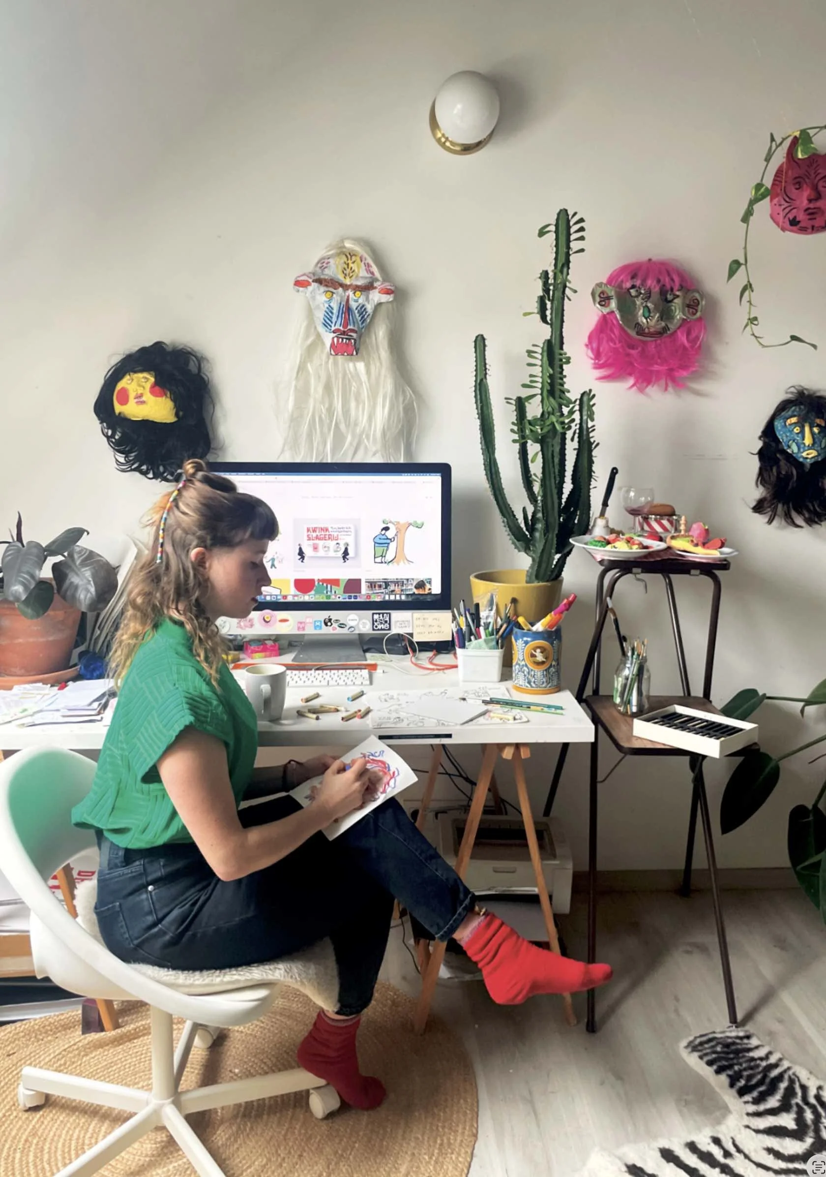 Hier is Iris. Iris is 31, woont in Gent, draagt vaak een grapjas en soms ook een lolbroek. Iris heeft een kunstdiploma (grafisch ontwerp! master!) en is vaak op zoek naar nieuwe creatieve projecten. Ik heb van horen zeggen dat je haar gewoon een mailtje kan sturen mocht je haar CV willen zien. Of als je eens samen wil knutselen.